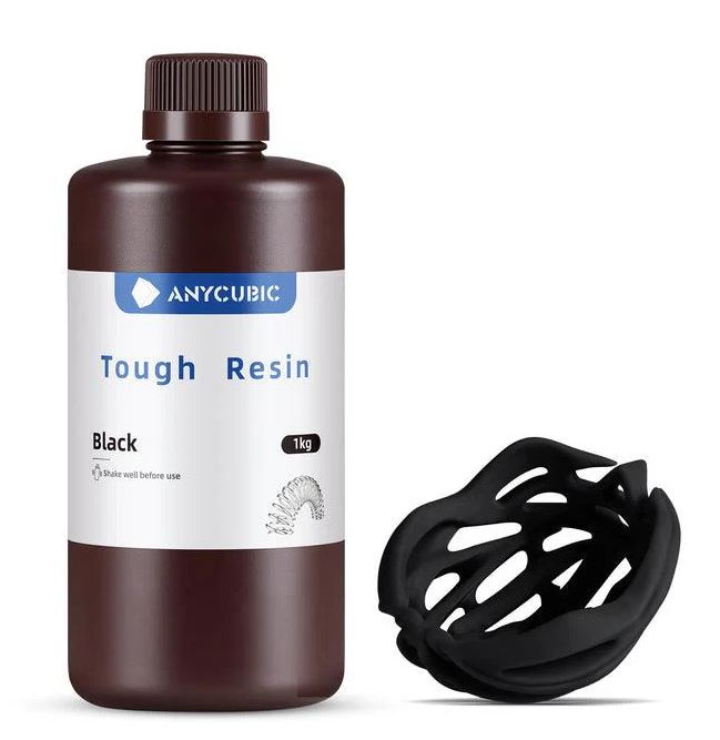 Anycubic UV Tough Reçine'nin siyah versiyonu, zorlu fiziksel koşullara dayanabilecek ve aynı zamanda detay doğruluğunu koruyabilecek parçalar üretmek için tasarlanmıştır.