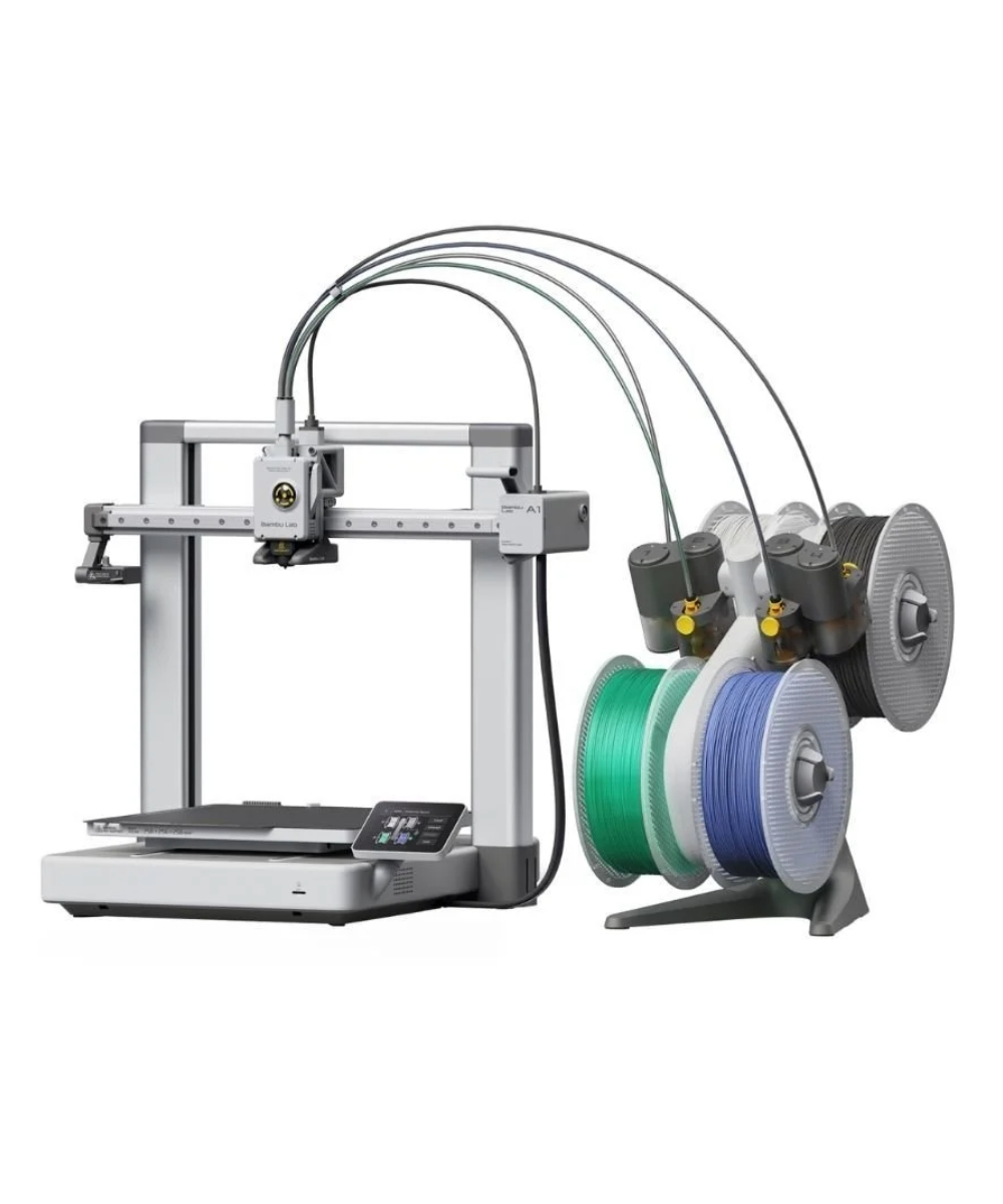 AMS Lite ile Çok Renkli Baskı: Paketin en cazip özelliği olan AMS Lite, 4 farklı filament makarasını yönetebilen kompakt ve kullanıcı dostu bir sistemdir. Bu sayede, tek bir baskıda dört farklı renkte model üretebilir veya farklı filament kombinasyonlarını deneyebilirsiniz.