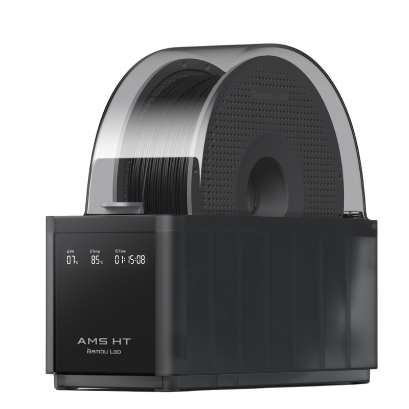 85°C’ye kadar kurutma sıcaklığı ile AMS HT, yüksek performanslı malzemeleri optimum seviyede kurutarak tutarlı ve yüksek kaliteli baskılar sağlar. Otomatik döner kurutma özelliği, filament makaralarını otomatik olarak döndürerek eşit kurutma sağlar; elektro-manyetik hava kanalı ise kurutma sırasında nemin atılmasına, boşta beklerken ise hava geçirmez şekilde saklanmasına imkân tanır.