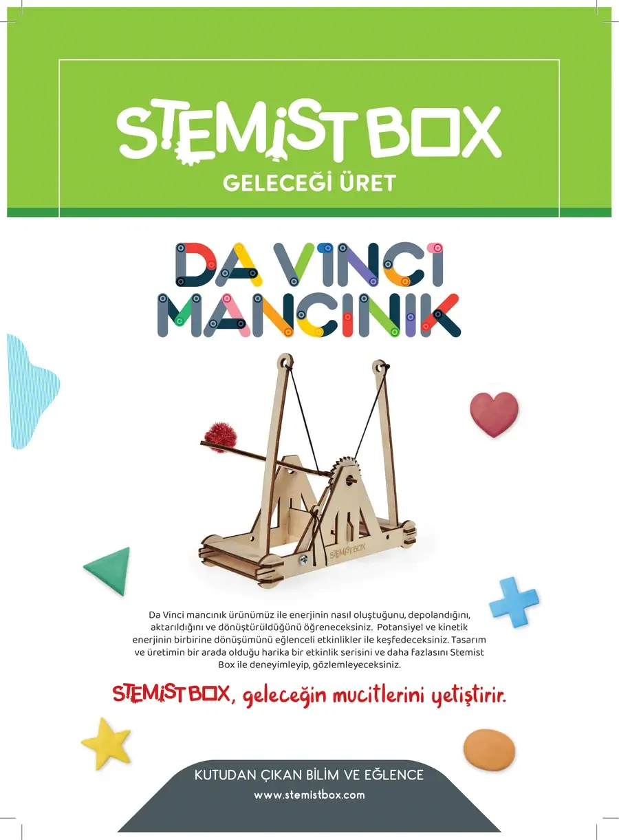STEM eğitimi sürecinde analitik düşünme becerisi kazanmaları için üretilen ahşap çocuk oyuncakları arasında bulunan Da Vinci Mancınık ile çocukların el-göz koordinasyonu da güçlenmektedir. Mancınık nedir, evde mancınık nasıl yapılır sorularına cevap bulmamıza yardımcı olan ahşap oyuncak seti ile potansiyel ve kinetik enerjilerin birbirlerine dönüşümü, enerjinin korunması sağlanmaktadır.