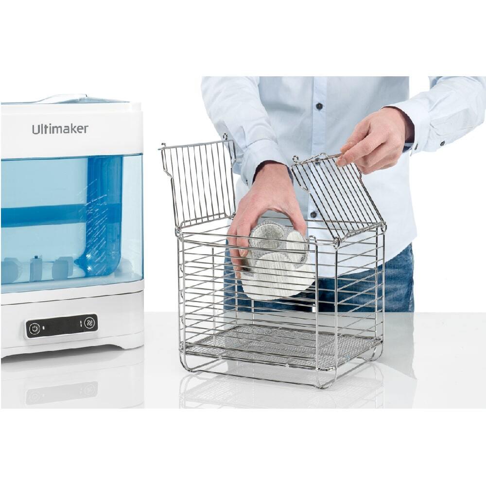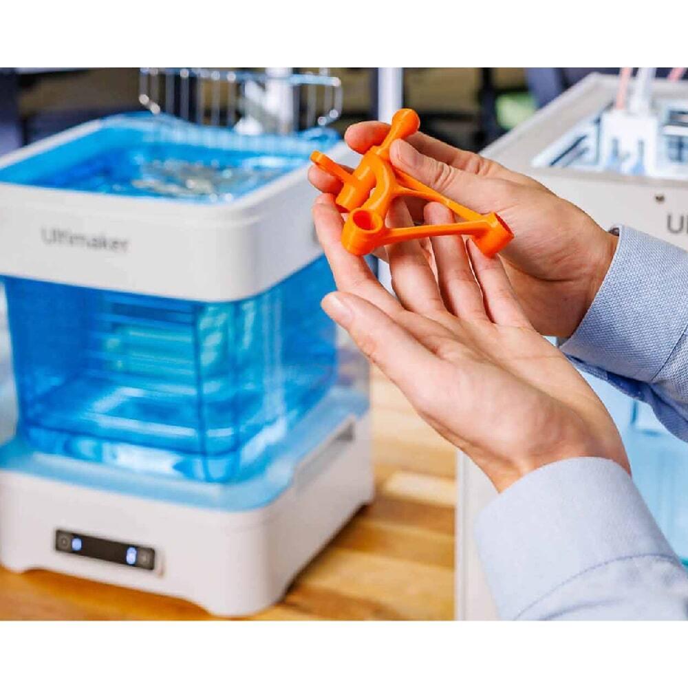 · Ultimaker PVA Çözücü, baskı başına yalnızca birkaç dakikalık işlem süresi gerektirir. Üstelik bunu minimum bakım ihtiyacıyla devam ettirir. Sadece başlat düğmesine basın, işini yapması için bırakın ve hazır olduğunda modeli alın.